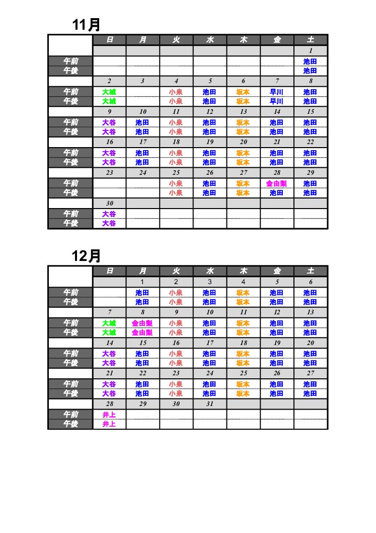 ■12月第2月曜日(12月08日):金由梨先生第2日曜日(12月14日):宮本先生第5日曜日(12月28日):井上先生